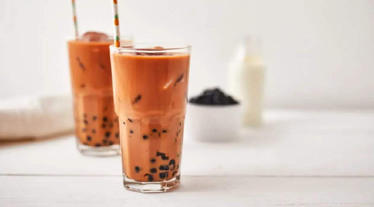 Herbata mleczna z dodatkiem syropu brown sugar.