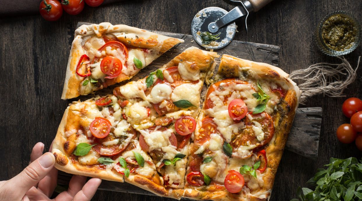 mozzarella, szynka, rukola, cukinia, pomidor, bazylia, oliwa bazyliowa