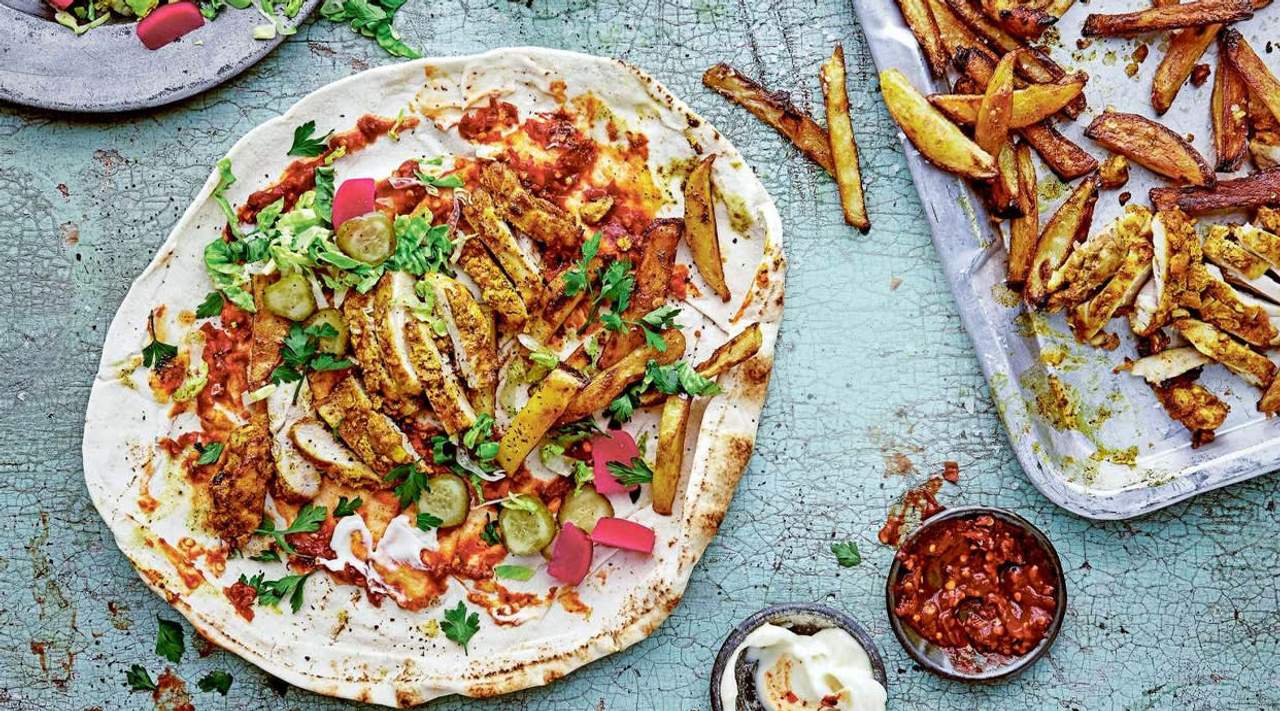 Pieczone mięso z kurczaka 160 g, pełnoziarnista pita, surówka i sos o obniżonej zawartości tłuszczu. Rodzaj mięsa i sos do wyboru. Cena zawiera koszt opakowania.
