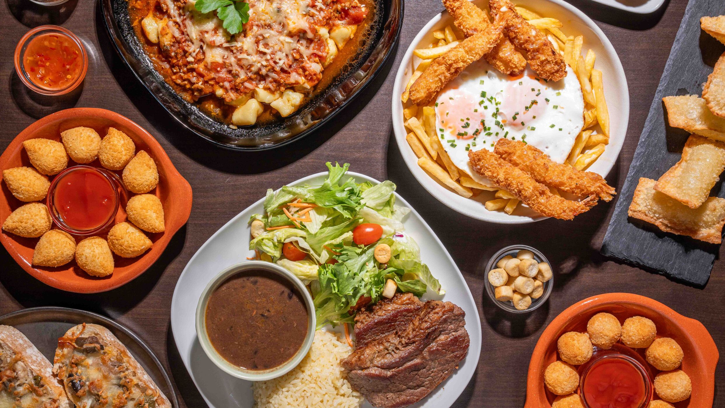 Escolha três tipos de mini salgados e dois tipos de molhos. Acompanha um refrigerante coca cola de 1 L.