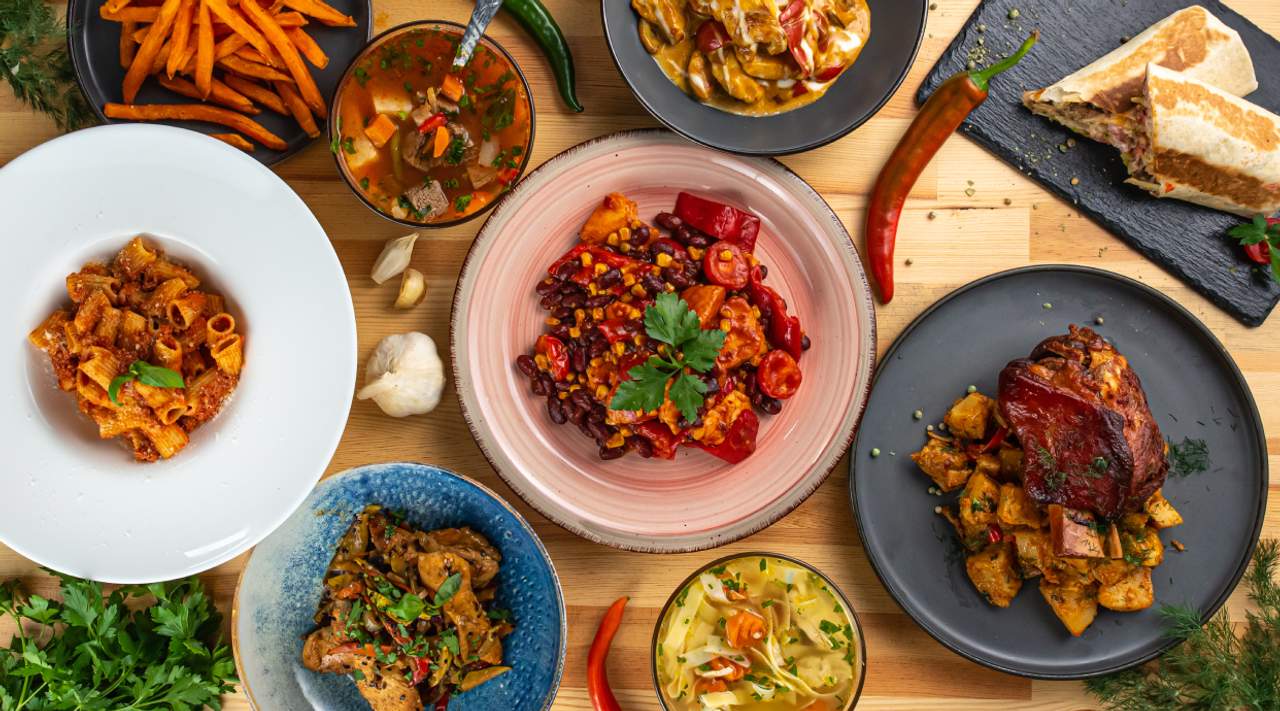 Cartofi wedges (200g), chili con carne (70g), sos cheddar (50g), mozzarella (50g), jalapenos murat, ceapa rosie, patrunjel