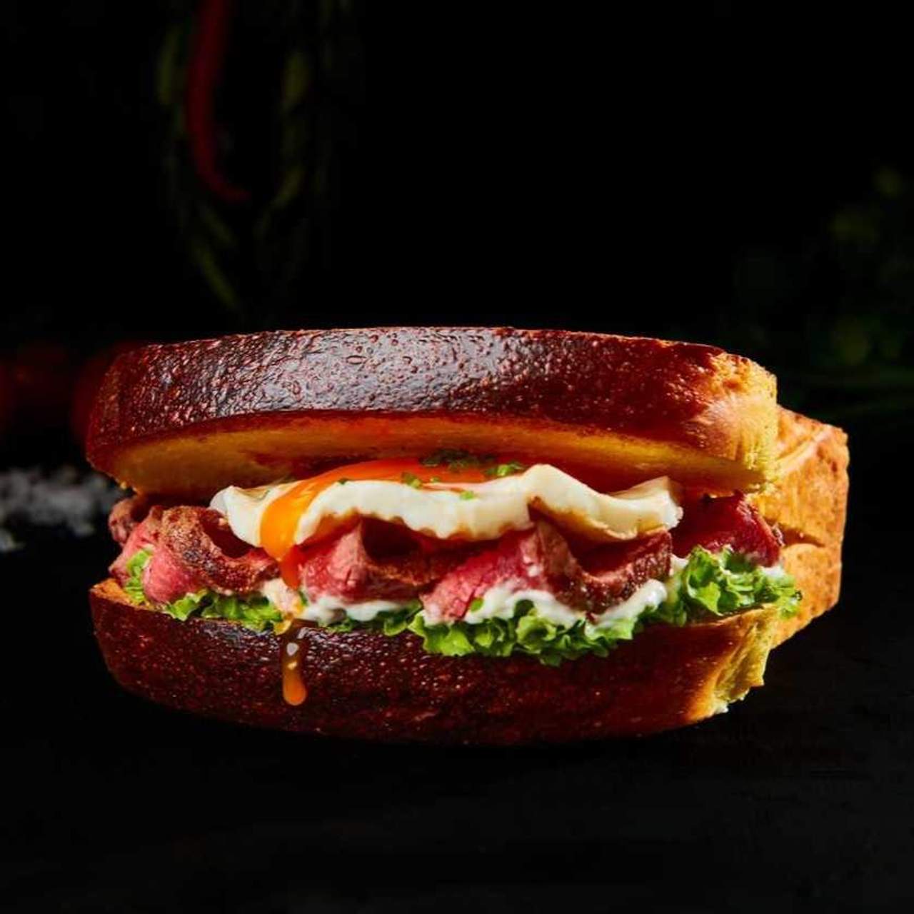 Panini, mușchi de vită, 2x ouă, maioneză cu trufe, castraveți murați - 380g