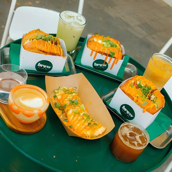 Toast, shrimp tempura, salata de ou cu shrimp, sos Cheddar, chives, ceapa verde - 450g