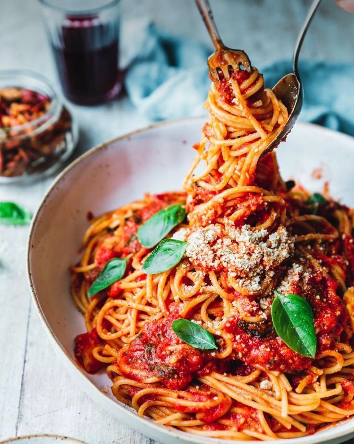 Paste, ceapa, bacon, ciuperci, sos de rosii, parmezan - 320g