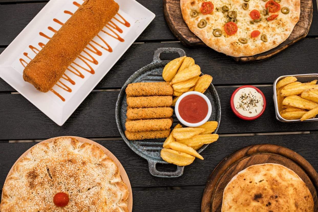 Pizza punjene korice, piletina u susamu, crispers krompirići, bečka, pomfrit, onion rings, pohovani kačkavalj, fokaćo, umaci