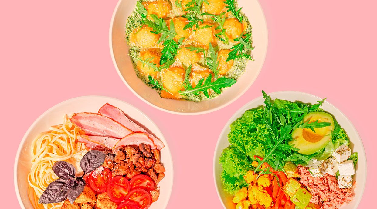 Листя салату, авокадо, овочі запечені, фета в травах, тунець, рукола. Соус огірково-вершковийВага: 330/60Калорії: 900. Б(27,0) Ж(80,1) В(22,0)Алергени:молочний продукт, риба, соя