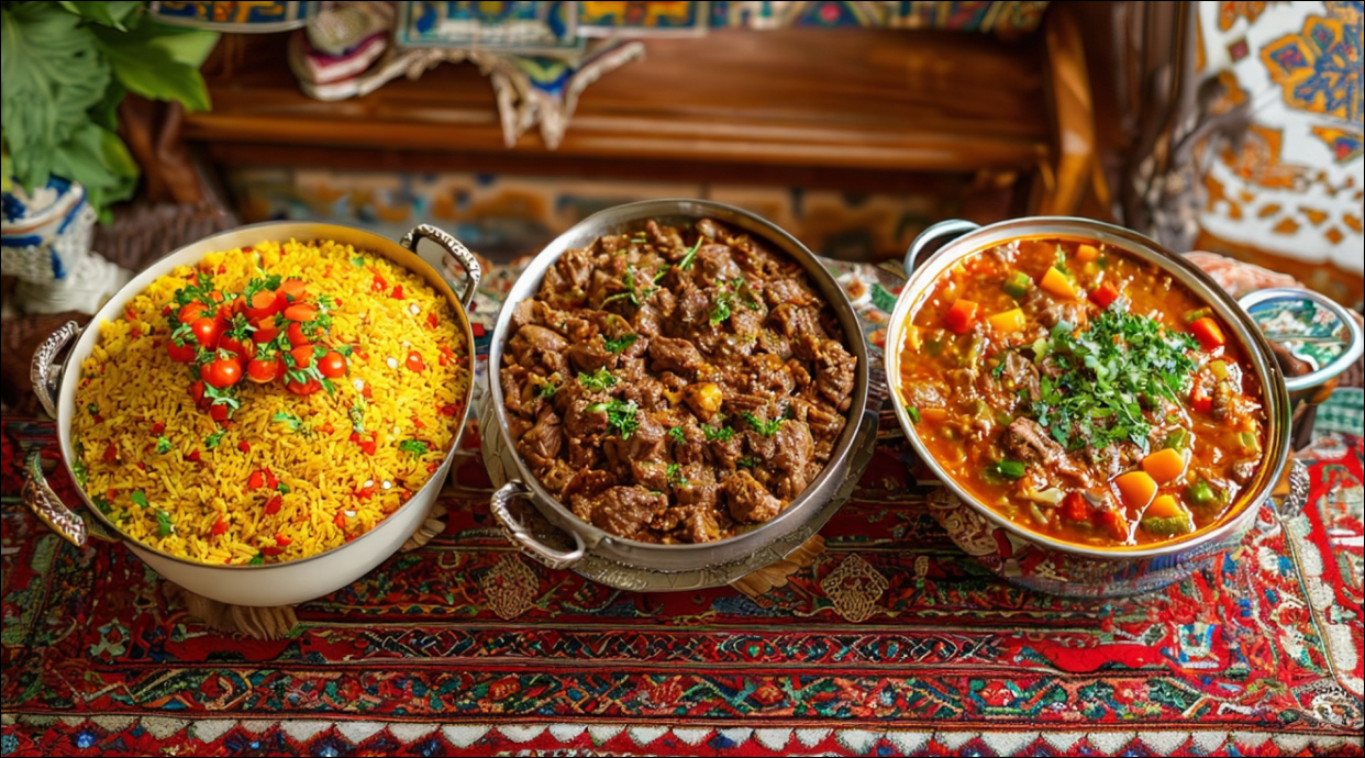 М'ясо телятина, рис, картопля, цибуля, перець солодкий, часник, морква, селера