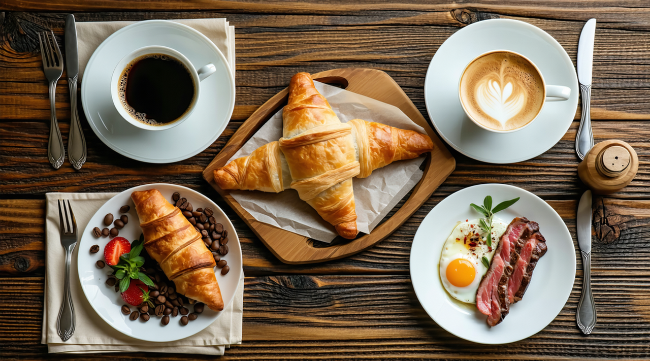 Flaky butter croissant paired with a creamy cappuccino