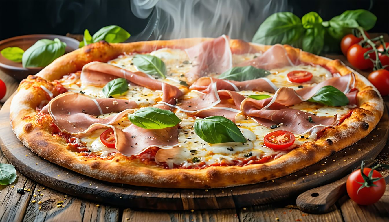 Доматен сос ,моцарела фиор ди лате ,гъби ,прошуто-Кото