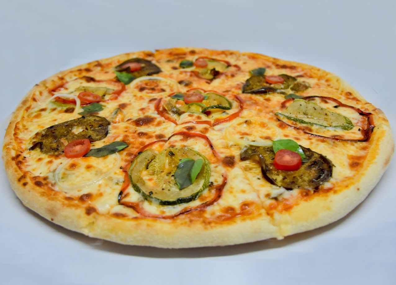 Tomates, mozza, crème, jambon chorizo, lardon, champignon œuf, origan