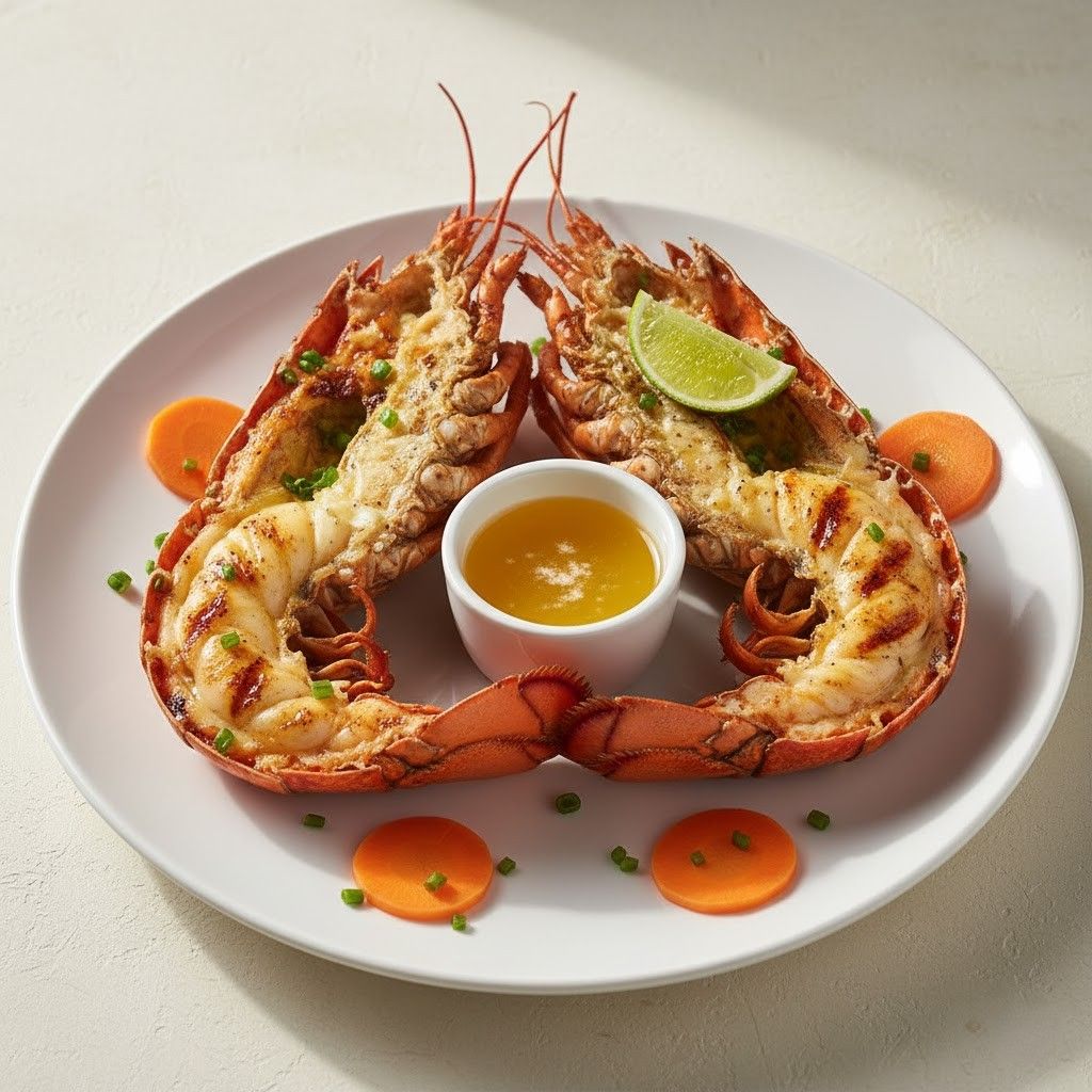 Langouste, gambas, crevettes, maïs, œuf