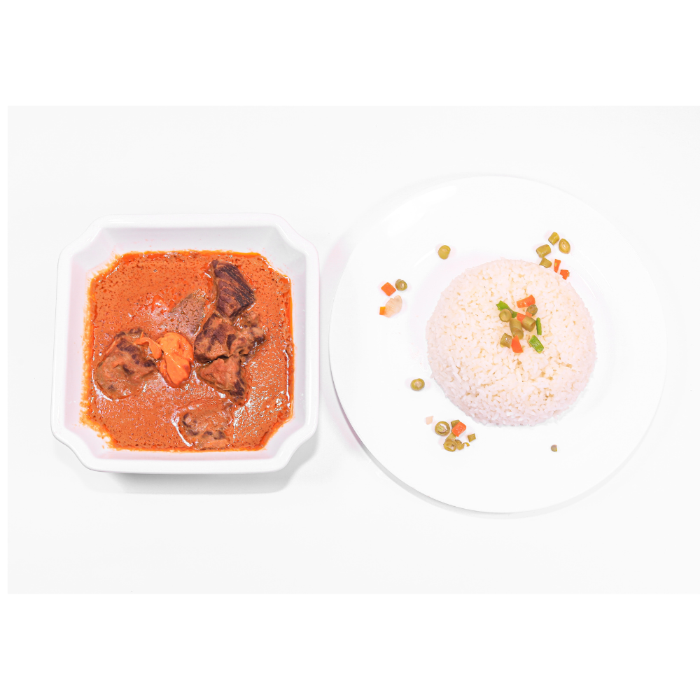 Sauce à base de gombo frais et d'aubergine avec une garniture et un accompagnement au choix