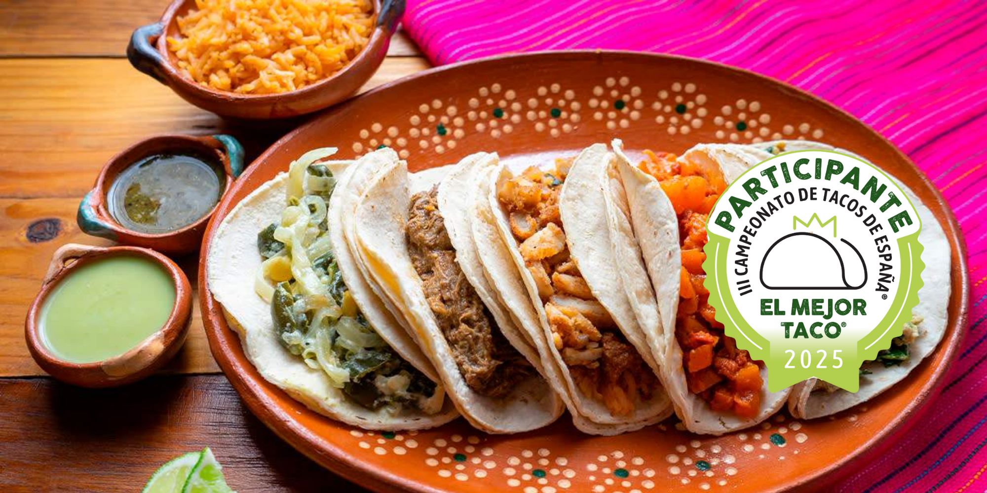 Con pimientos y cebolla, queso, frijoles, arroz, lechuga, maíz, guacamole y crema agria