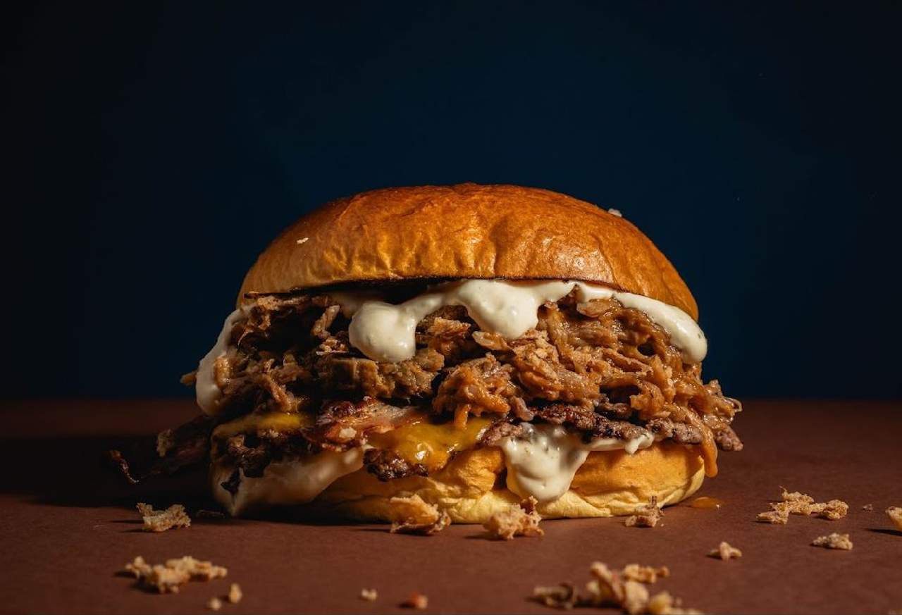 Acompañada de nuestro pan brioche, hamburguesa de dos carnes smasheadas en nuestra parrilla, queso cheddar, batavia, bacon bits, salsa cheddar y salsa especial de barbacoa y bits