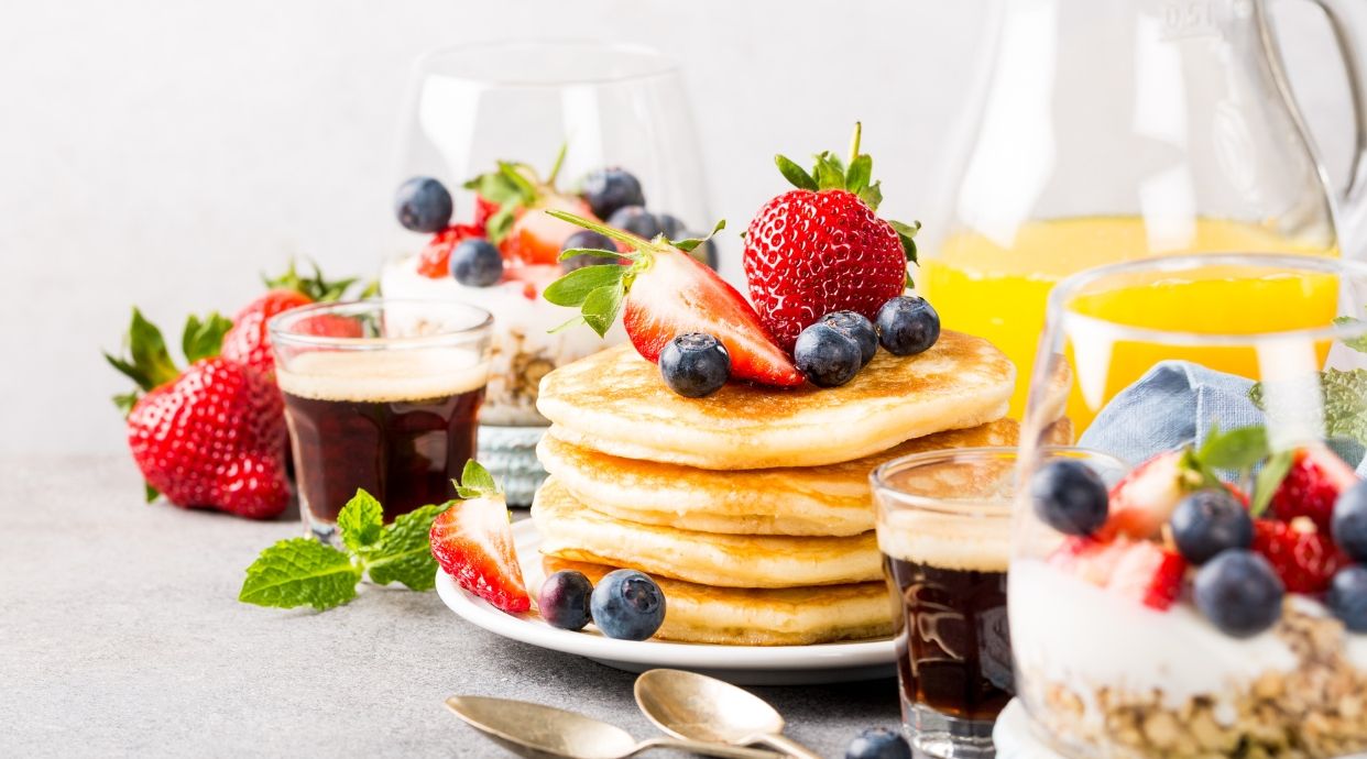 Tortitas recién hechas con salsa a elección + zumo de fruta natural recién hecho