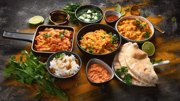 Pollo, cordero, gambas cocinado en salsa curry y especias