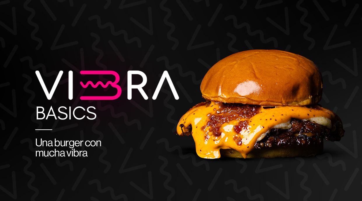 2x90gr de nuestro blend smash, cheddar rojo, cheddar blanco madurado, crema secreta, salsa burger al más puro estilo vibra y bacon bits.