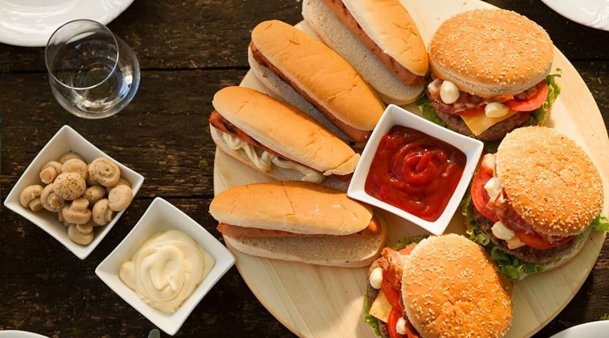 Pan, queso, hamburguesa, cebolla, huevo, salsa