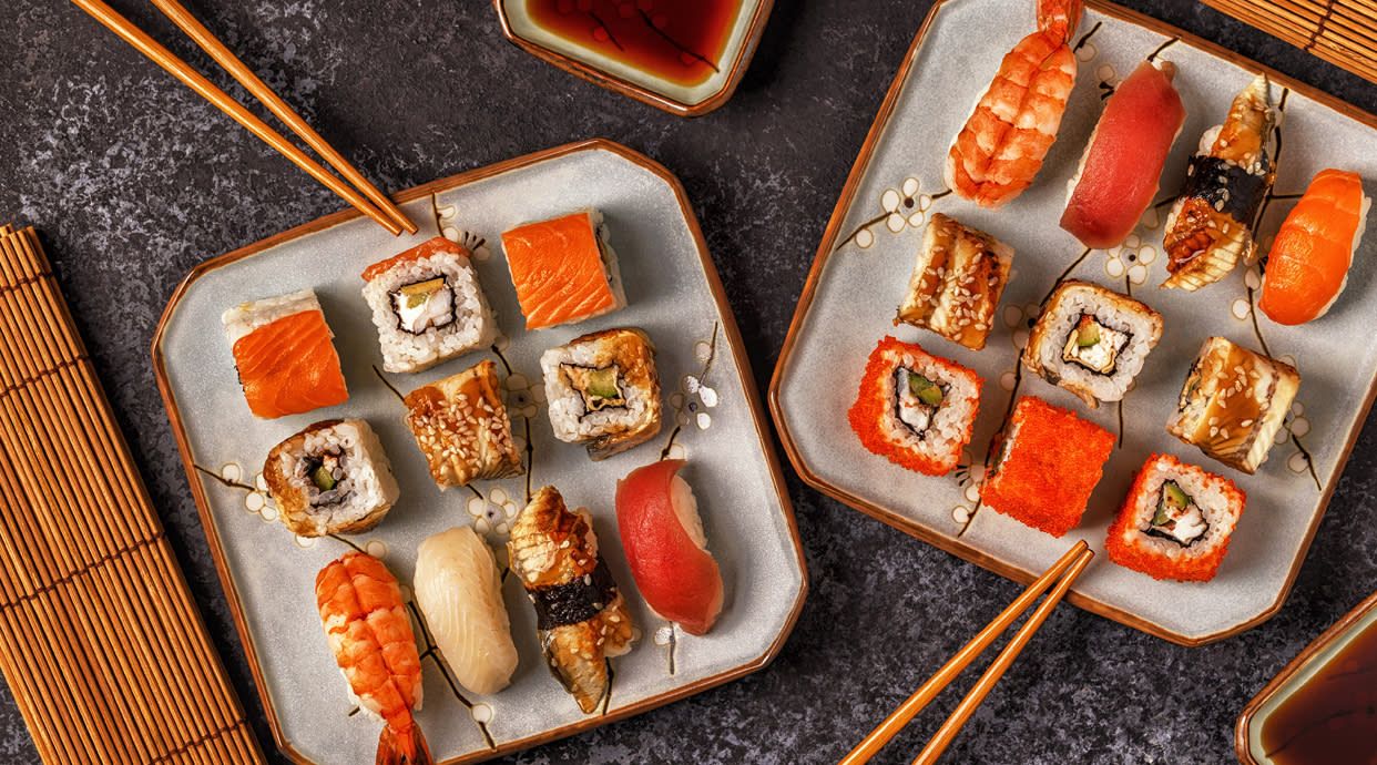 6 Sushi salmón,3 sushi atun,3 sushi pez mantequilla,6 maki salmón, 6 maki atun,6 salmón roll,9 sashimi salmón,6 sashimi atun,2 sushi ikura