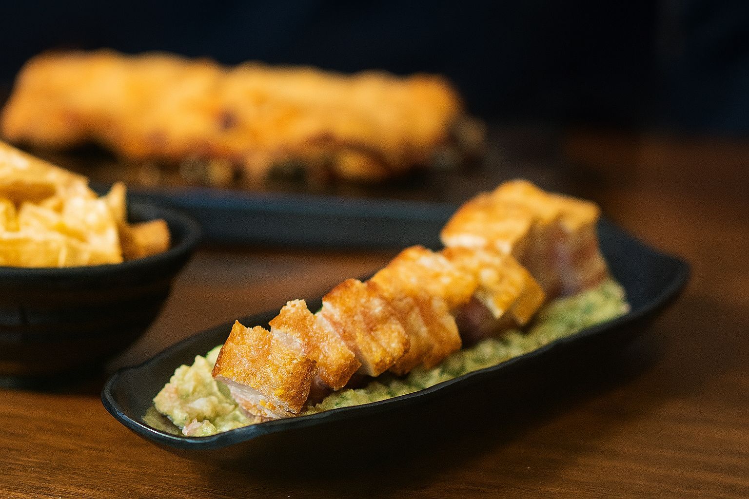 Torreznos con crema de guacamole