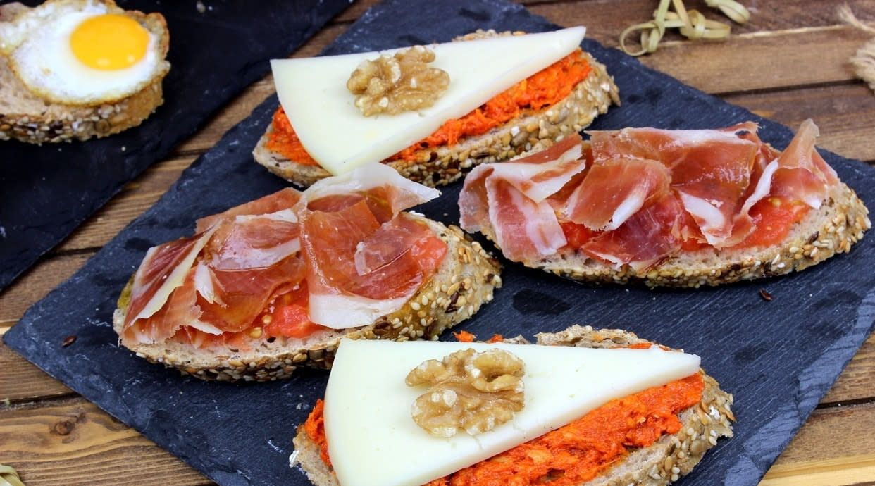Cabrales, ali - oli, vinagreta, pimienta, setas, ketchup
