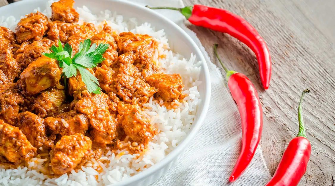 Plat especial de Curry vindaloo amb coco, piña, xampinyo molt picant