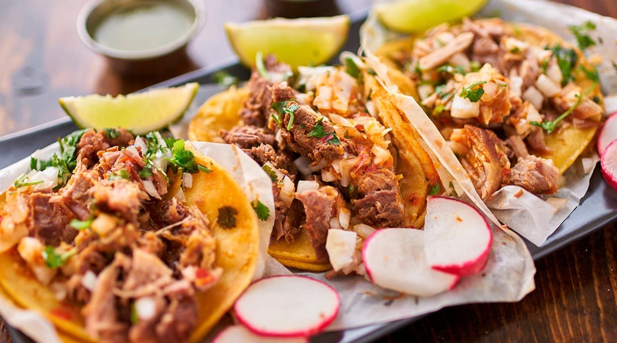 Carrito de tacos 4 a elegir: tinga de pollo, pastor, ternera, verduras, carcamusa o guacamole