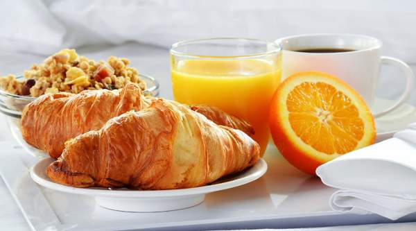 Zumo Naranja (3) Chocolate caliente (3) Cruasán (2) Tostadas tomate y jamón (1),y aguacate y jamon( 1) Bol Cereales (1) Gofre Nutella (1)