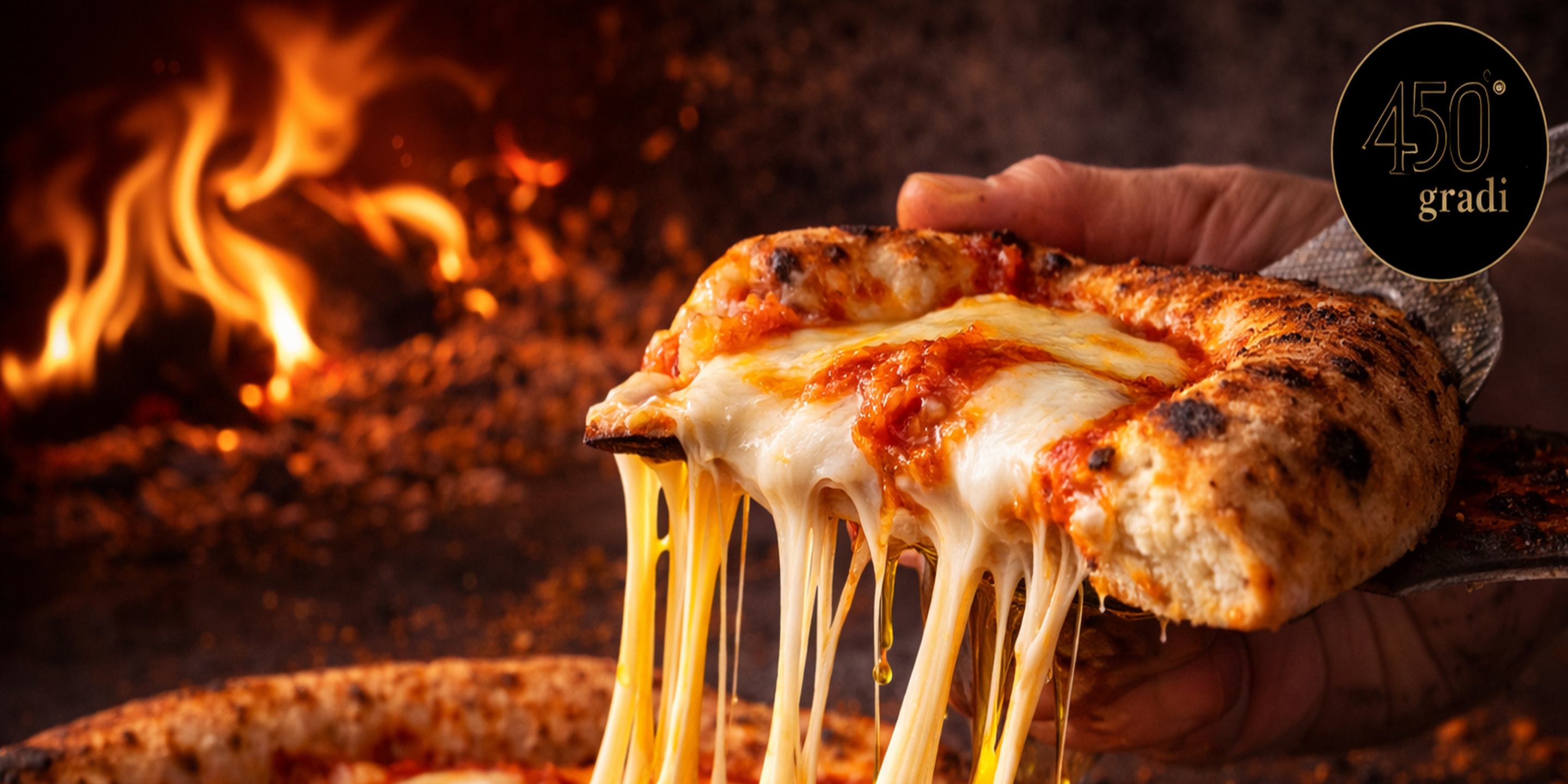 Borde relleno de ricotta, mozzarella fundente, pesto genovés y salame picante. Una creación intensa, audaz y absolutamente 450Gradi.