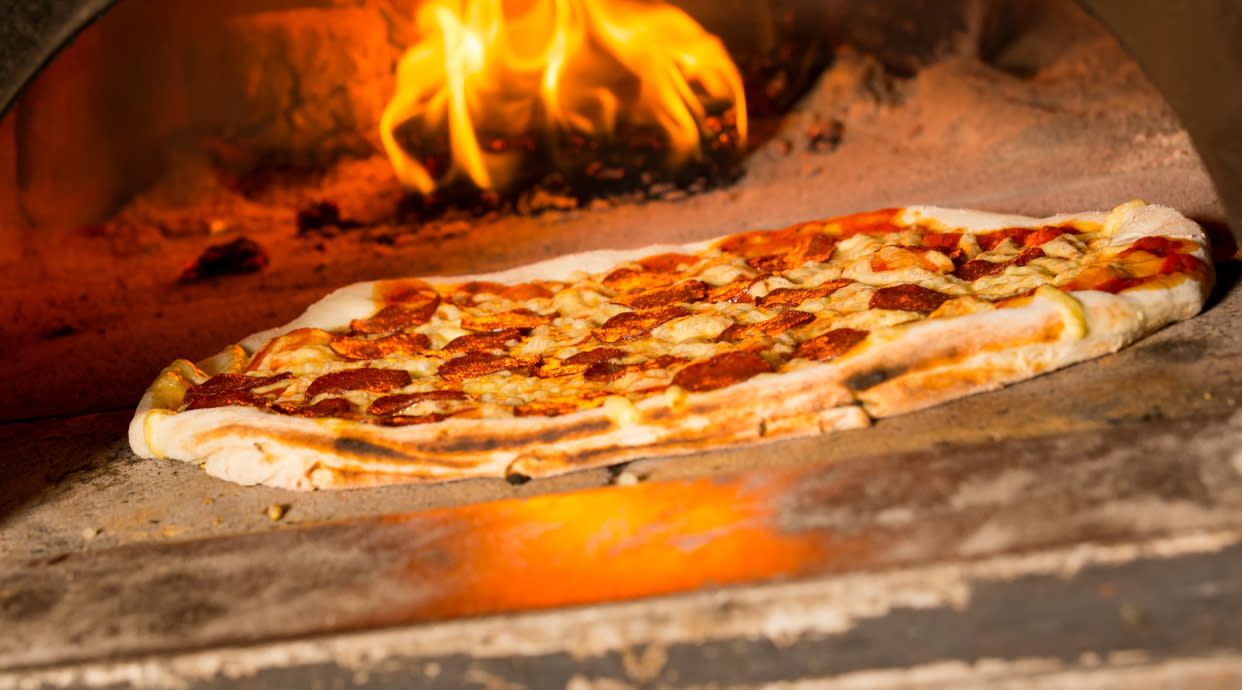 Tomate, Provola ahumada, "Spianata Romana" picante, pimientos, albahaca, aceite de oliva EV
