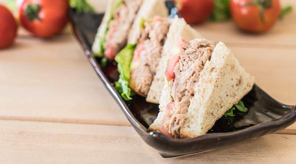 Pan de barra con atún, lechuga, tomate, queso y cebolla, huevo cocido y mayonesa