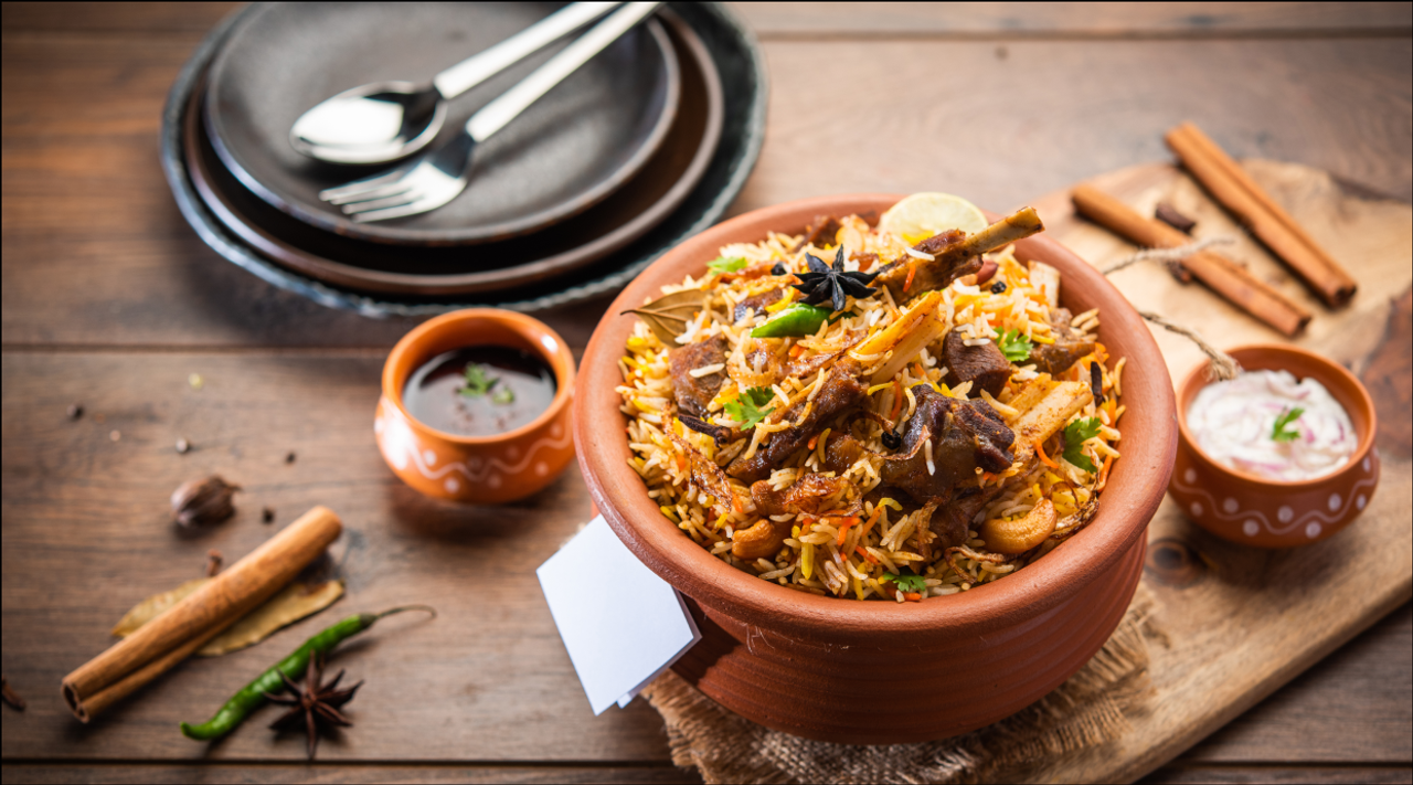 Plato tradicional con exotico aroma y sabor cocinado con hierbas, jengibre y ajo; con gamas, pollo y cordero