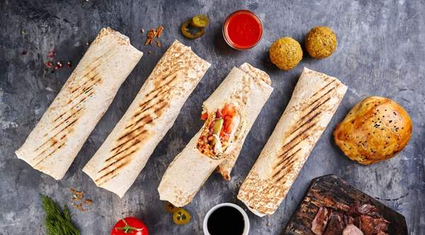 De pollo, ternera, mixto, falafel o queso a elección, patatas y bebida a elección