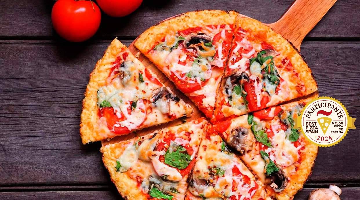 Tomate, mozzarella, champiñones, jamón cocido, olivas, alcachofas y anchoas