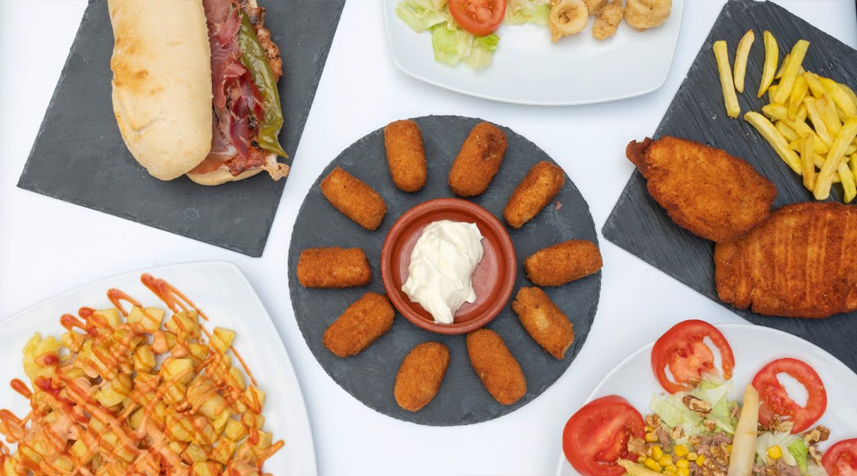 Queso, lechuga, tomate, cebolla y huevo o tortilla
