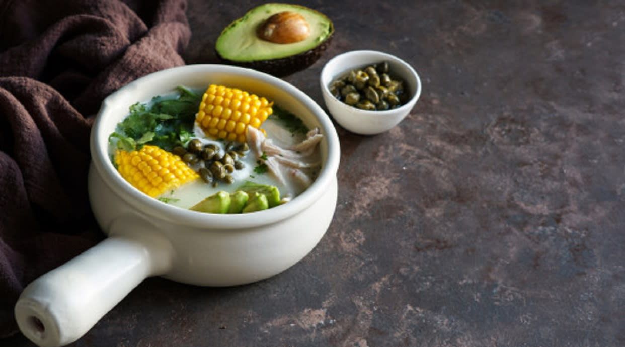 Sopa de costilla, sopa de sancocho, sopa de mondongo, etc... acompañada de una porción de arroz y arepita de maíz.