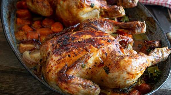 Delicioso pollo hecho a leña y carbón, acompañado con salsa a elegir. (Salsa en recipiente separado).