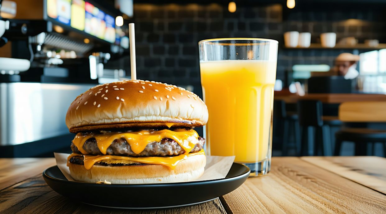 Hamburguesa de pollo, queso cheddar, cebolla crunch y salsa cheddar