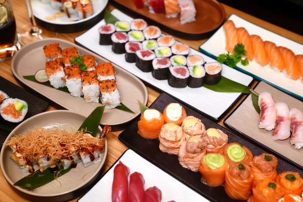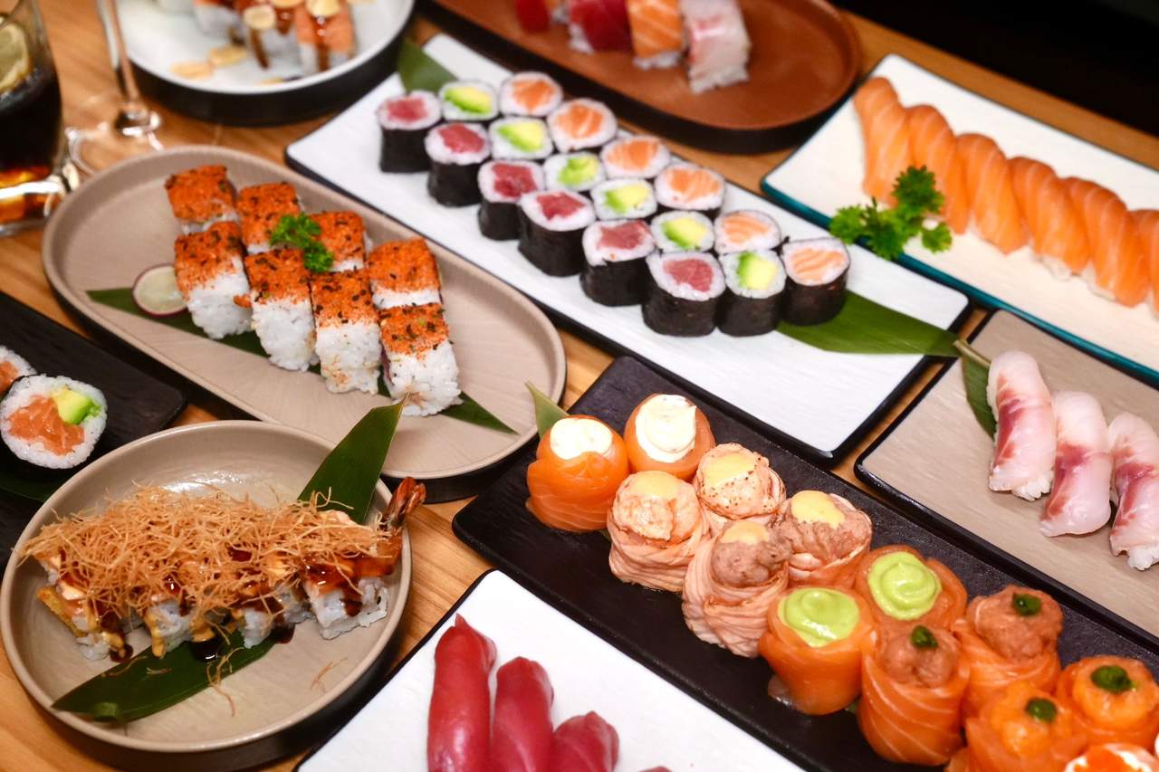 12 Nigiri (4 salmón, 4 atún, 2 lubina y 2 lagostinos), 16 uramaki (8 salmón aguacate y 8 gambas kataifi), 12 hosomaki (6 salmón y 6 aguacate), 13 sashimi (3 salmón, 3 atún, 3 suzuki, 2 gambas vermella y 2 cigalas)