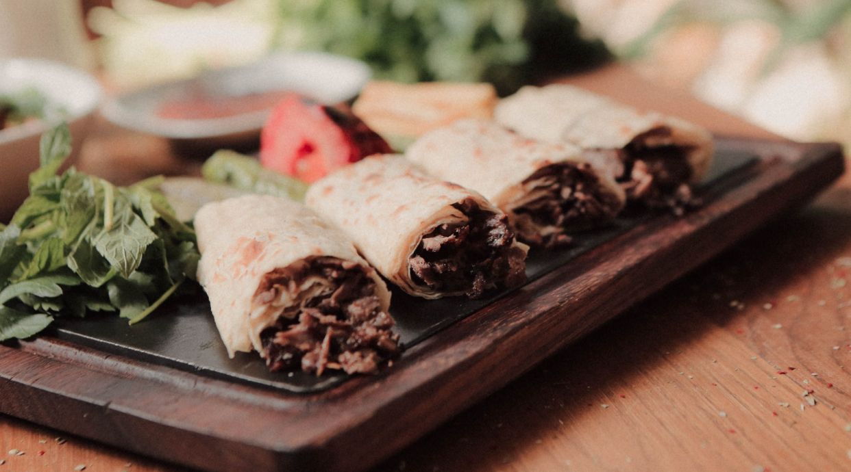 Durums (3 uds.), acompañado de patatas y Coca-Cola Sabor Original botella 1L.