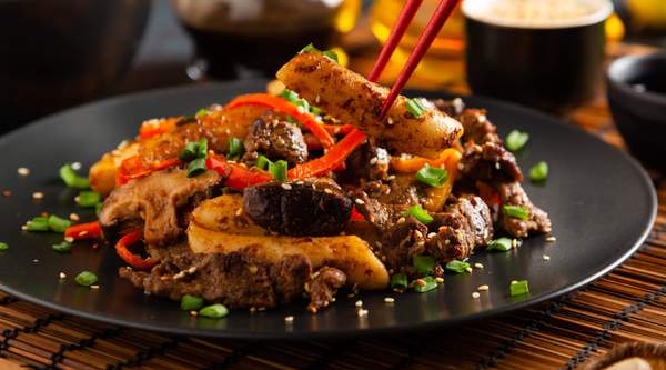 Ternera verduras de temporada brotes de soja crispy onion huevo. Alérgenos: Gluten Huevo