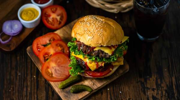 Lechuga, tomate, cebolla, carne, bacon y huevo