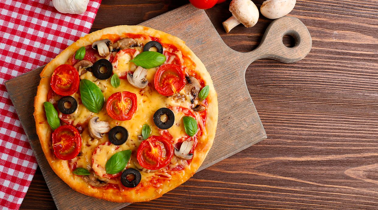 Con salsa de tomate, jamon York, champiñones y queso mozzarella