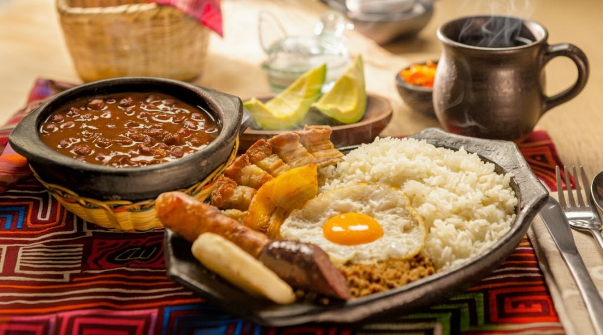 Gallopinto, aguacata, nata, maduro y huevo revuelto