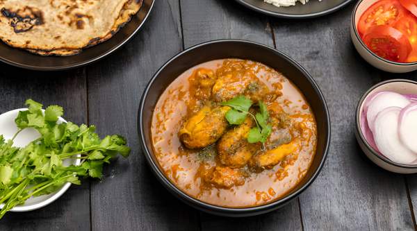 Chicken cooked with in a special sauce with garlic, ginger, herbs and spices seasoned with fresh coriander
