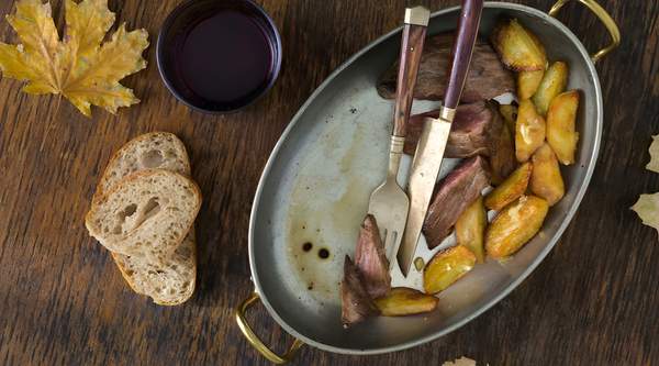 Pollo, cerdo, ternera, salchichas, criollos, patatas y verduras