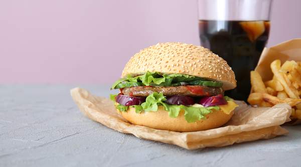 Lleva dos proteinas a su elección,Con queso, lechuga, tomate, cebolla caramelizada con bacon, huevo, salsas y patatas fritas