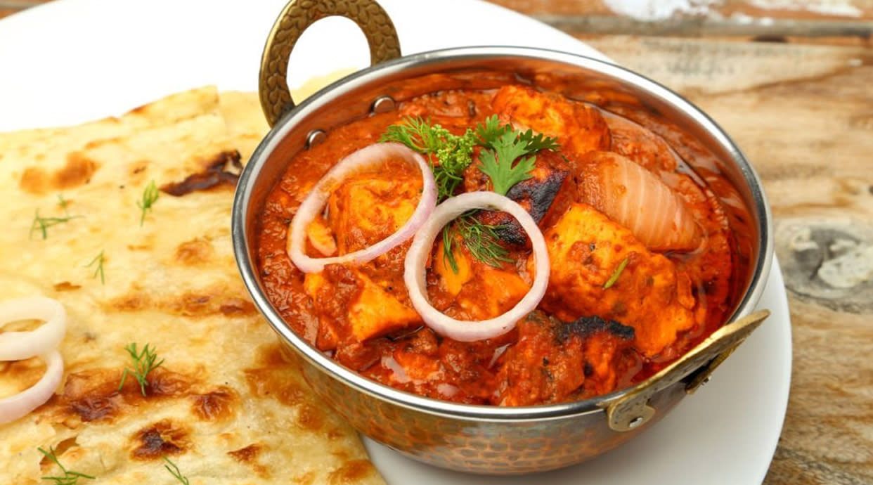 Curry rico y cremoso elaborado con mantequilla, paneer (queso indio), especias, cebollas y tomates
