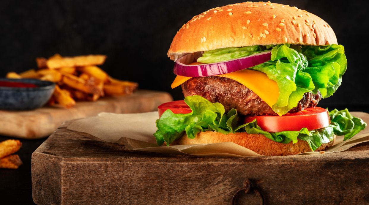 Hamburguesa De Ternera y papas fritas