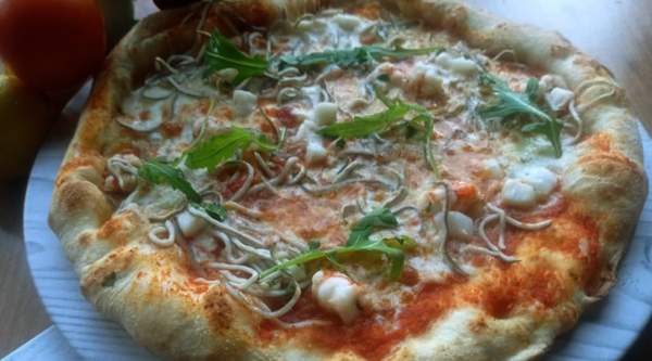 35cm,48 horas de fermentación, base de tomate mozzarella fior d' latte , champiñones al ajillo.rucula.Alergenos Gluten lácteos sulfitos frutos secos y cáscara.